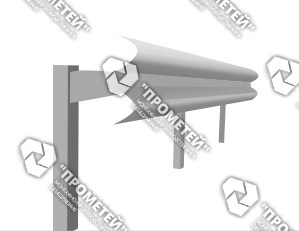Конструкция включает продольные элементы (банки), консоли, которые крепятся на вертикальную стойку, зафиксированную в земляном полотне. Последняя может иметь исполнения - гнутая стойка. Допустимый диапазон толщины от 2,5 до 5 мм. Устанавливается за грунтовом полотне автодороги в границах рабочего, переходного, концевого сегментов. Поставляется в крепежом для монтажа конструкции.